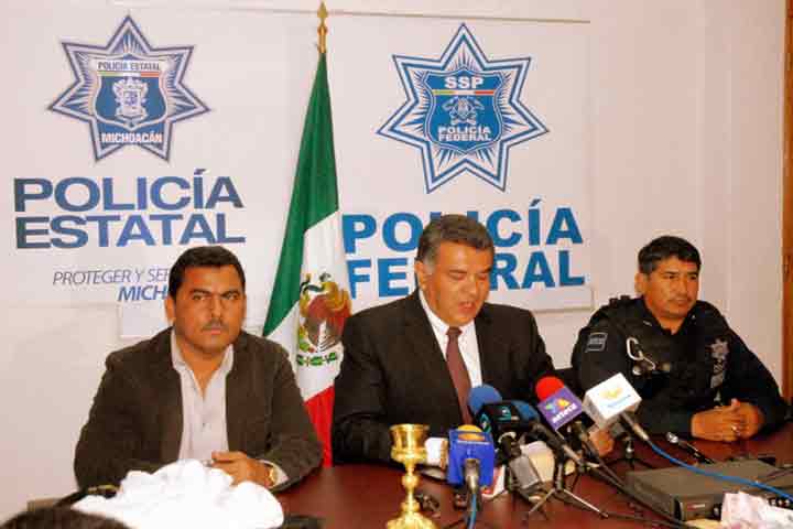 En rueda de prensa, el Secretario de Seguridad Pública, Comisario, Comisario, Elías Álvarez Hernández, acompañado del subdirector de la XII Unidad de las Fuerzas Fed... Ver más...