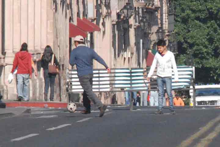 NOTICIAS 26/04/2012Cascarita de futbol, mientras los morelianos los repudianNuevamente habitantes de las casas del estudiante 2 de Octubre y Nicolaita han vuelto a desquiciar el Centro Histórico, de Morelia, donde con colchones, bancas y autos secuestrados bloquearon diversas avenidas como "medio de presión para que el gobierno cumpla sus demandas".