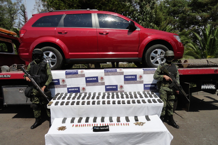 NOTICIAS 17/03/2012Soldados aseguran armamento y droga en vehículo abandonadoCargadores, cartuchos y droga fueron asegurados por soldados del 37 Batallón de Infantería, al interior de un vehículo abandonado en la colonia Michoacán, del poblado de Santa Clara, perteneciente a esta demarcación.
