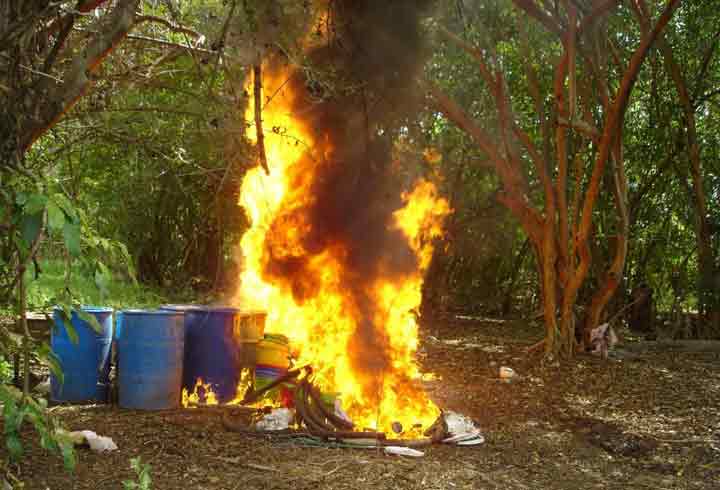 La narcococina estaba ubicada en la orilla de una barranca, frente a enormes acantilados de una zona árida y montañosa, justo donde se dividen los municipios de Gabriel Zamora y Parácuaro, al poniente de las comunidades de Chimilpa y Betania.