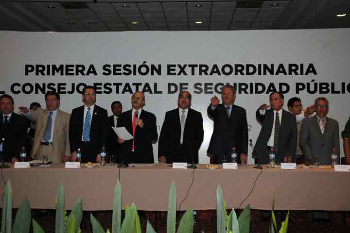 NOTICIAS 07/03/2012Instalan Consejo Estatal de Seguridad PúblicaAl rendir protesta como presidente del Consejo Estatal de Seguridad Pública, el gobernador Fausto Vallejo Figueroa, afirmó que no escatimará esfuerzos ni habrá vacilaciones al momento de tomar decisiones en ese rubro, y es que, dijo, la seguridad ciudadana no admite demoras ni aplazamientos.
