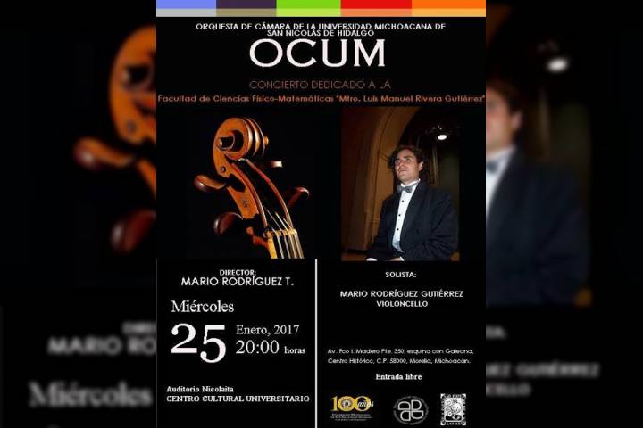 Con un concierto dedicado a la Facultad de Ciencias Físico-Matemáticas "Mtro. Luis Manuel Rivera Gutiérrez", la Orquesta de Cámara de la Universidad Michoacana de San Nicolás de Hidalgo reanuda sus presentaciones con motivo del Centenario de la Casa de Hidalgo.