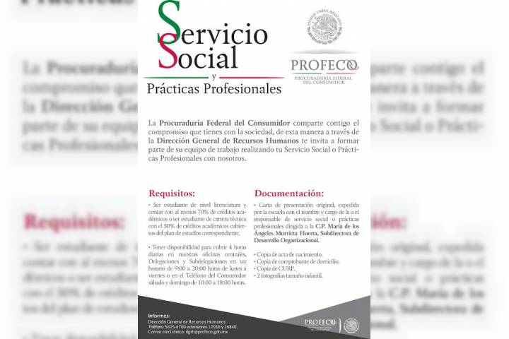 A través de un convenio con la Asociación Nacional de Universidades e Instituciones de Educación Superior (ANUIES) la Procuraduría Federal del Consumidor (Profeco) ofrece a los alumnos de las instituciones que forman parte de esta instancia nacional, la oportunidad de realizar su servicio social o prácticas profesionales en sus oficinas centrales, delegaciones y subdelegaciones ubicadas en todo el país.