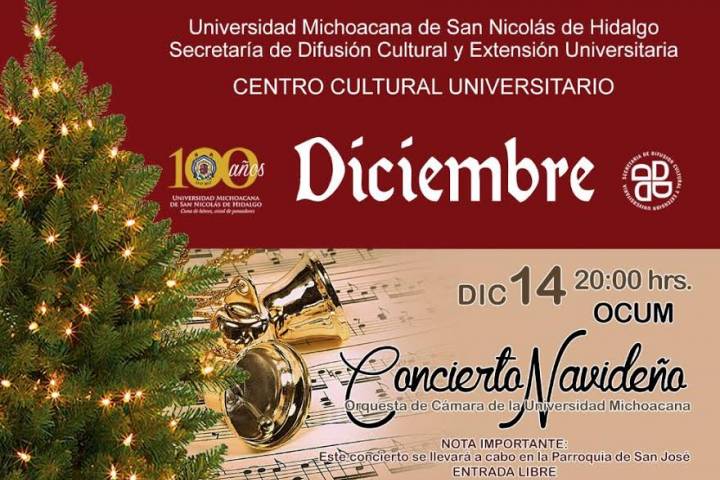 Un Concierto Navideño, villancicos, una posada, así como la exposición de Arte Plumaria y la continuación del ciclo de cine de la Cineteca de Michoacán y cine, conforman el calendario cultural semanal de la Universidad Michoacana de San Nicolás de Hidalgo.