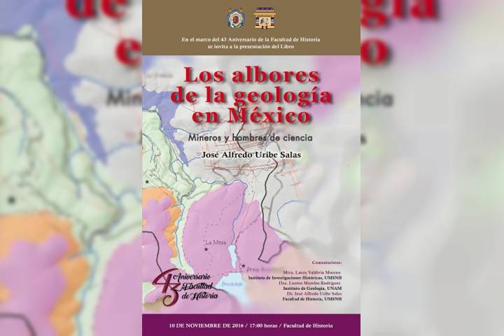 En el marco de las actividades por el XLIII Aniversario de la Facultad de Historia de la Universidad Michoacana de San Nicolás de Hidalgo, este mes se llevará a cabo la presentación del libro "Los albores de la GeologÃa en México. Mineros y Hombres de Ciencia", a cargo de su autor José Alfredo Uribe Salas.