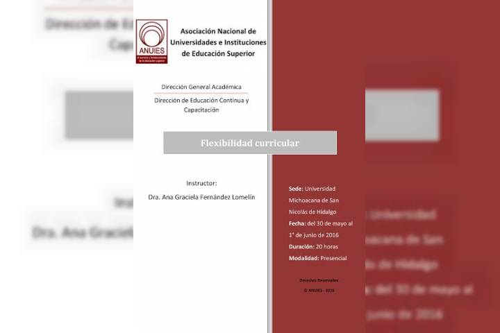 NOTICIAS 27/05/2016Inicia curso sobre diseño curricular Secretaría Académica de la UMSNHCon el compromiso de facilitar a sus docentes de la mejor capacitación para la realización de su profesión, la Universidad Michoacana de San Nicolás de Hidalgo, la Secretaría Académica iniciará la próxima semana un curso sobre planeación didáctica patrocinado por la Asociación Nacional de Universidades e Instituciones de Educación Superior (ANUIES), dirigido a secretarios académicos nicolaitas.