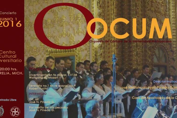 NOTICIAS 29/05/2016La Orquesta de Cámara de la UMSNH inicia junio con conciertoLa Orquesta de Cámara de la Universidad Michoacana iniciará el mes de junio con un atractivo concierto en el que fungirá como director invitado un egresado de la Facultad Popular de Bellas Artes de la Casa de Hidalgo; la cita es este miércoles 1º en el Centro Cultural Universitario, informó la Secretaría de Difusión Cultural y Extensión Universitaria.
