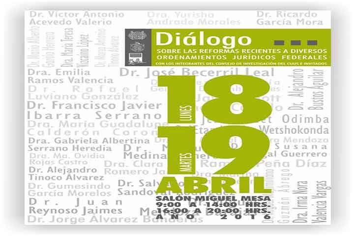 En el marco de los festejos por el CCXVII aniversario de la instauración de los Estudios de Derecho en el estado de Michoacán, el Centro de Investigaciones Jurídicas y Sociales (CIJUS) de la Facultad de Derecho y Ciencias Sociales de la Casa de Hidalgo, realizará la próxima semana un Diálogo sobre las reformas recientes a diversos ordenamientos jurídicos federales y estatales.