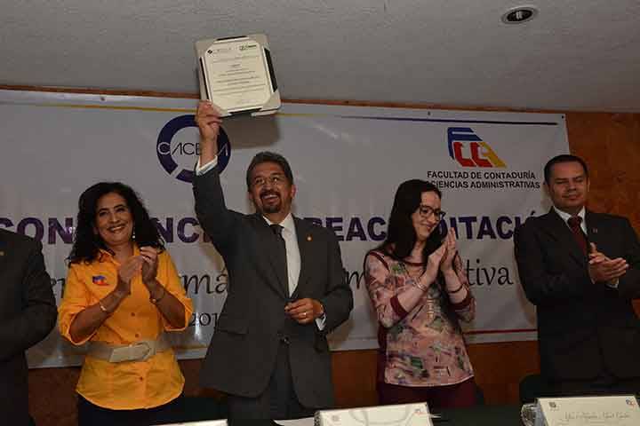 Durante la recepción de la constancia de Reacreditación del programa educativo de la Licenciatura en Infor... Ver más...