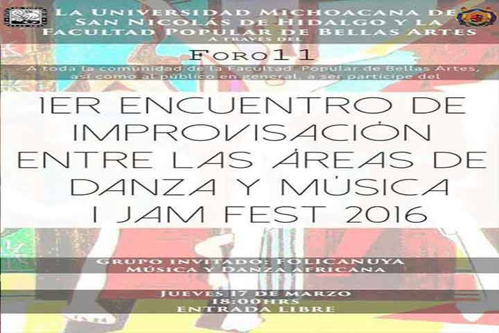 Con un encuentro informal de improvisación musical y dancística, la Facultad Popular de Bellas Artes (FPBA) de la Universidad Michoacana de San Nicolás de Hidalgo (UMSNH), llevará a cabo una presentación en la que se busca fusionar dos disciplinas artísticas como son la música y la danza, de una manera espontánea.