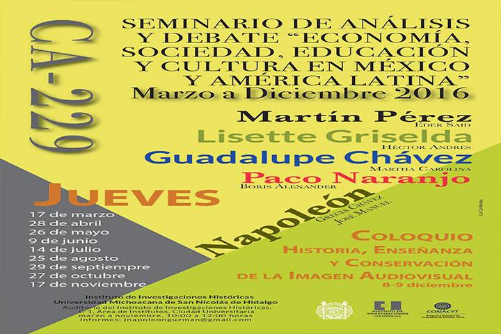 El Cuerpo Académico Economía, Cultura y Pensamiento en México y América Latina (UMSNH-229), dependiente del Instituto de Investigaciones Históricas de la Universidad Michoacana de San Nicolás de Hidalgo, organizará durante los próximos meses el Seminario de Análisis y Debate "Economía, Sociedad, Educación y Cultura en México y América Latina", por lo que hace extensiva la invitación a la comunidad de la DES de Humanidades y públi... Ver más...