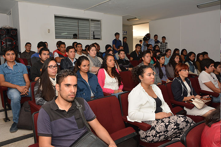 En presencia de estudiantes de la licenciatura y posgrado reunidos en el auditorio "Mig... Ver más...