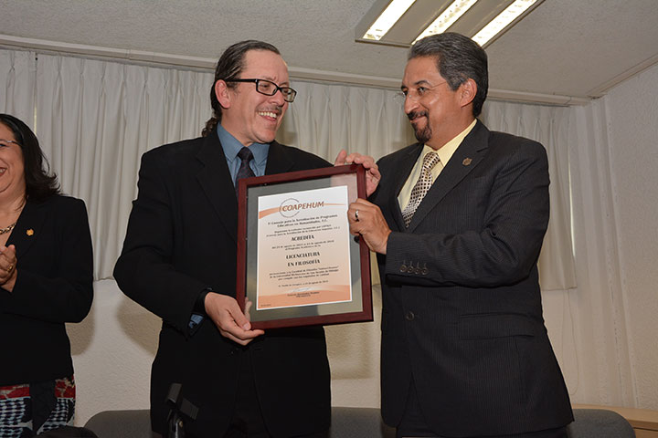 NOTICIAS 19/11/2015Facultad de Filosofía recibe su acreditaciónDe manera formal, la Facultad de Filosofía "Samuel Ramos" de la Universidad Michoacana de San Nicolás de Hidalgo, recibió el documento que avala la acreditación de su programa de licenciatura, por parte del Consejo para la Acreditación de Programas Educativos en Humanidades (COAPEHUM), cuyo titular, Roberto Hernández Oramas, destacó que los egresados de la institución gozan de un buen prestigio y gran aceptación entre los michoacanos, en... Ver más...