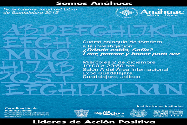 NOTICIAS 22/11/2015Participará UMSNH en coloquio dentro de la FIL de Guadalajara La Universidad Michoacana de San Nicolás de Hidalgo participará como institución invitada por la Universidad Anáhuac México Norte, en la Feria Internacional del Libro de Guadalajara (FIL) en el Cuarto Coloquio de Fomento a la Investigación denominado "¿Dónde estás Sofía? Leer, pensar y hacer para ser", a través de la participación de la coordinadora del Doctorado Interinstitucional en Psicología, María Elena Rivera Heredia.