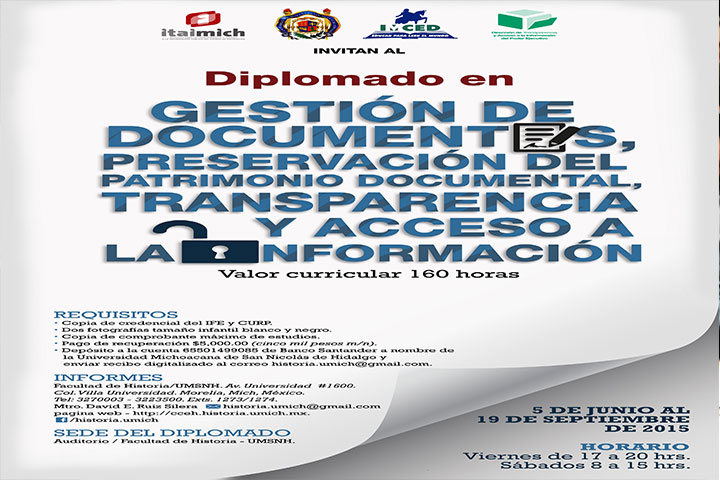 NOTICIAS 18/05/2015Contribuye a la transparencia en información Facultad de HistoriaLa democracia exige que se facilite el acceso del ciudadano a la información pública, sin embargo esto no puede ser cumplido cabalmente, si no se cuenta con documentos y archivos bien organizados y descritos, de ahà la importancia de dotar de herramientas académicas a quienes desarrollan funciones relacionadas con la gestión de documentos y tareas de información pública, aseveró el director de la Facultad de Historia, David E. Ruiz Silera... Ver más...