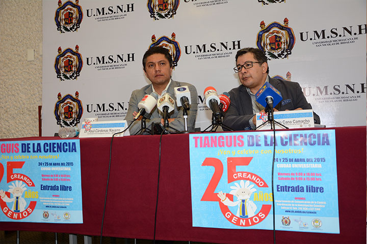NOTICIAS 22/04/2015La divulgación científica es una labor fundamental para la UMSNHComo el evento de mayor antigüedad y trascendencia en cuanto a divulgación científica se refiere para el estado, calificó el coordinador de la Investigación Científica de la Universidad Michoacana de San Nicolás de Hidalgo (UMSNH), Raúl Cárdenas Navarro, al Tianguis de la Ciencia, cuya vigésima quinta edición se realizará los próximos viernes 24 y sábado 25 del presente.