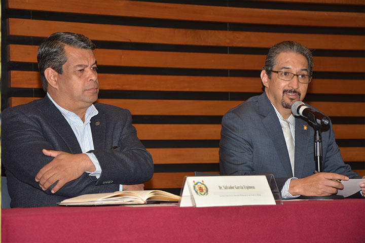 NOTICIAS 26/01/2015Ofrece el rector transparencia en el destino de cada peso que ingrese a la UMSNHEl proceso democrático en el que está inscrito la Universidad Michoacana de San Nicolás de Hidalgo (UMSNH), incluye la aplicación escrupulosa de los recursos económicos que en ella se emplean, por lo que el uso y destino de cada peso será oportunamente transparentado no sólo a la comunidad nicolaíta, sino ante la sociedad en general, resaltó el rector Medardo Serna González.