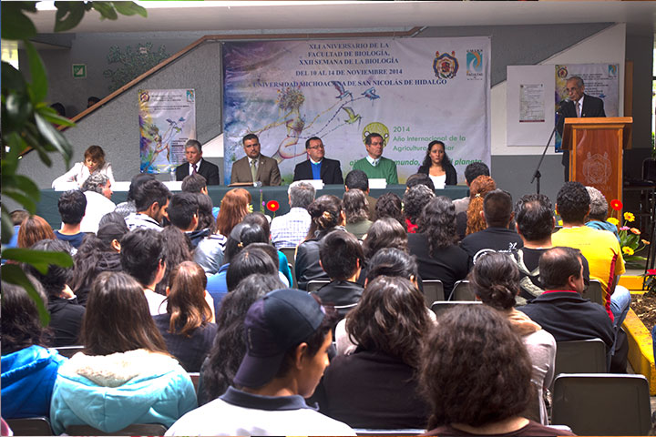 NOTICIAS 10/11/2014Conmemoran XLI Aniversario de la Facultad de BiologíaLo más importante en una Universidad Pública, además de darle certeza a la sociedad de que están siendo bien aprovechados sus recursos, es tener las puertas abiertas; afirmó durante el acto inaugural de la XXII Semana de Biología, y la conmemoración del XLI Aniversario de la Facultad de Biología, el Secretario Académico de la Universidad Michoacana de San Nicolás de Hidalgo (UMSNH), David Rueda López.