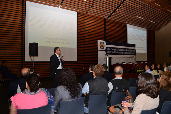 Al inaugurar el Primer Taller de Cuerpos Académicos de la Universidad Michoacana de San Nicolás de Hidalgo (UMSNH), el Rector José Gerardo Tinoco Ruiz, felicitó a los docentes que se dieron cita en este evento con el interés de mejorar el trabajo dentro de los Cuerpos Académicos de los que forman parte y aseveró que el cumplir con la regla para alcanzar indicadores no es suficiente si no se tiene la convicción de ser mejores.