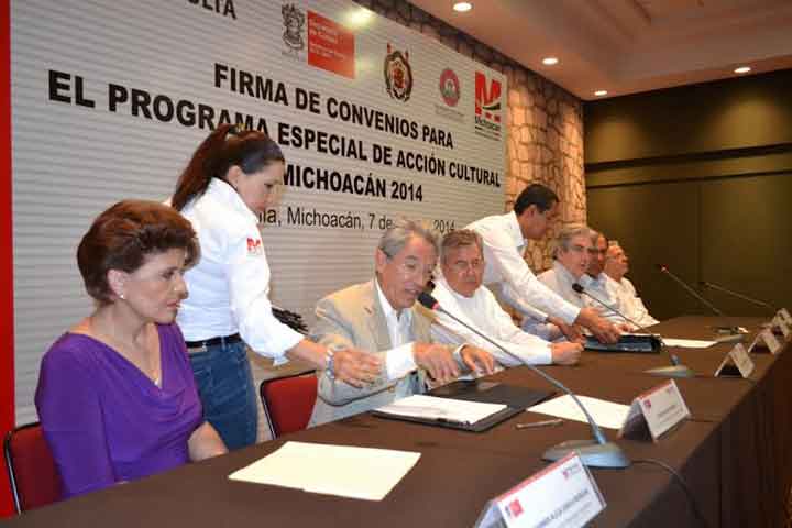 La Universidad Michoacana de San Nicolás de Hidalgo (UMSNH) tomará el control de las Caravanas Culturales dentro del Programa Especial de Acción Cultural Michoacán 2014, firmado este lunes en Casa de Gobierno, en la ciudad de Morelia, entre Salvador Jara Guerrero por la Universidad; Carmen Alicia Dávila, por el Conservatorio de las Rosas; Marco Antonio Aguilar, por la SecretarÃa de Cultura del Estado; y Rafael Tovar y de Teresa, por el Co... Ver más...