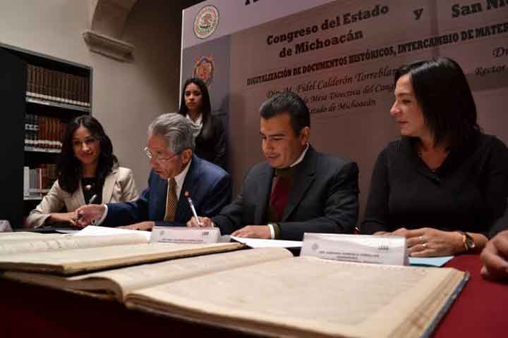 La Universidad Michoacana de San Nicolás de Hidalgo (UMSNH) se ha colocado como lÃder a nivel nacional al tener certificadas todas sus salas de biblioteca y de lectura, es por ello que con la finalidad de digitalizar y preservar documentos históricos, promover cursos y talleres e intercambiar material bibliográfico, el rector de la Casa de Hidalgo, Salvador Jara Guerrero, signó un convenio de colaboración con la biblioteca del Congreso de... Ver más...