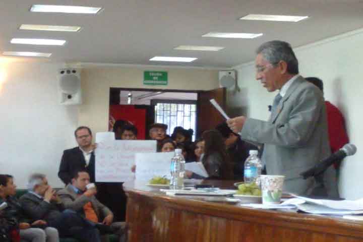NOTICIAS 14/11/2013En contra de la reforma a la Ley Orgánica, alumnos se manifiestan en sesión de ConsejoEstudiantes de diversas facultades de la Universidad Michoacana se manifiestan de manera pacÃfica en el pleno de la Sesión de Consejo Universitario.
