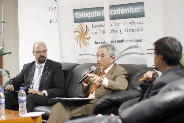 En el marco del Coloquio Académico "Laicidad y libertad religiosa en México y el mundo, una mirada interdisciplinaria", el rector de la Universidad Michoacana de San Nicolás de San Nicolás de Hidalgo (UMSNH), Salvador Jara Guerrero, participó en conjunto con los rectores de la Universidad Latina de América y la Vasco de Quiroga en el panel "Visión histórica a la laicidad y libertad religiosa en México".