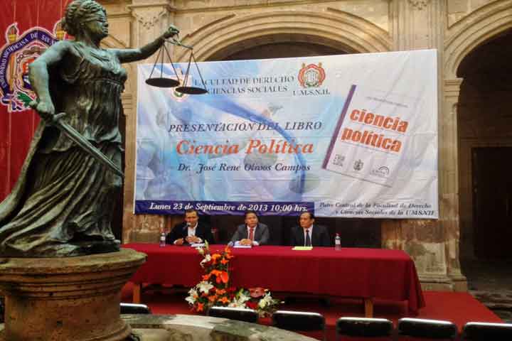 La Facultad de Derecho y Ciencias Sociales de la Universidad Michoacana de San Nicolás de Hidalgo (UMSNH), presentó el libro Ciencia Política del doctor José René Olivos Campos.