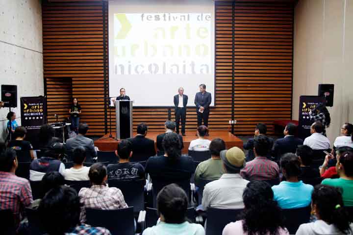 Durante el acto oficial de inauguración del Festival de Arte Urbano Nicolaita, el Rector Salvador Jara Guerrero, se congratuló que sea en el espacio universitario donde se den expresiones creativas, que quedarán plasmadas en varios muros de los edificios de Ciudad Universitaria.
