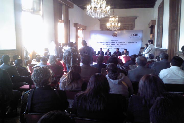 Este lunes se llevó a cabo el foro La Universidad Michoacana de San Nicolás de Hidalgo, sus Condiciones y Necesidades, con el objetivo de discutir a profundidad la situación por la que atraviesa la Casa de Hidalgo, en un contexto de la posibilidad de un recorte presupuestal propuesto por el gobierno del estado y el déficit que viene arrastrando de 317 millones de pesos.