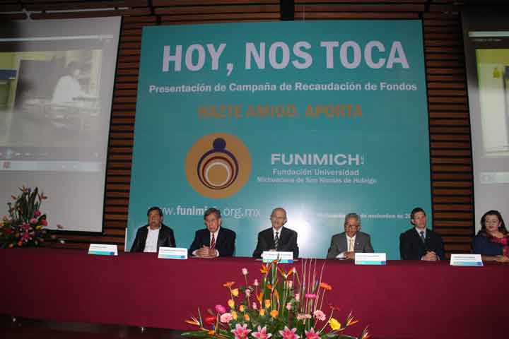 Con el objetivo de apoyar con recursos que sirvan a la UMSNH para que cumpla con sus distintos compromisos, se presento la campaña de Recaudación de Fondos HAZTE AMIGO, APORTA de la Fundación de la Universidad Michoacana de San Nicolás de Hidalgo (FUNIMICH) A. C. que preside el ingeniero, Cuauhtémoc Cárdenas Solórzano.