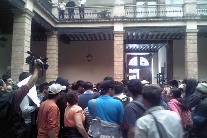 El grupo de aproximadamente 100 jóvenes ingreso al patio del recinto Legislativo donde pidieron ser atendidos por alguno de los representantes populares.