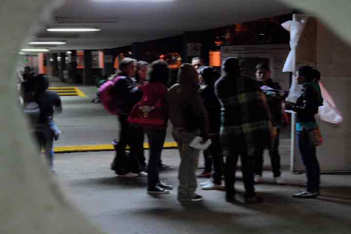 El contingente es de aproximadamente 300 jóvenes que ruidosamente intentan llam... Ver más...