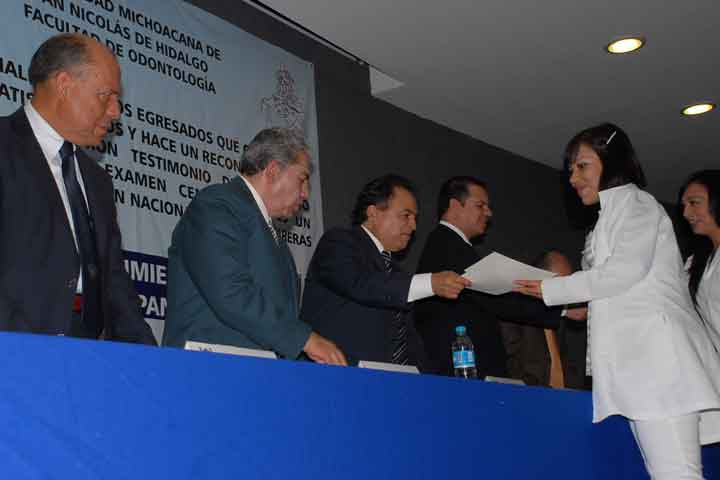 La Universidad Michoacana de San Nicolás de Hidalgo (UMSNH), a través de la Facultad de Odontología entregó constancias a más de cien egresados de ésta licenciatura que obtuvieron resultados satisfactorios al presentar el examen del Centro Nacional para la Educación Superior (CENEVAL) y reconocimiento a catorce que obtuvieron testimonio de desempeño sobresaliente.
