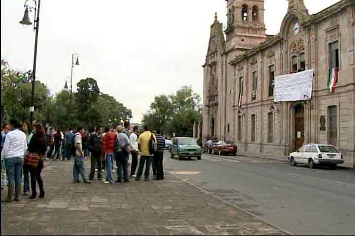 Sin que se note la presencia de los paristas, fuera del edificio existe una cartulina donde se hace pública su inconformidad.