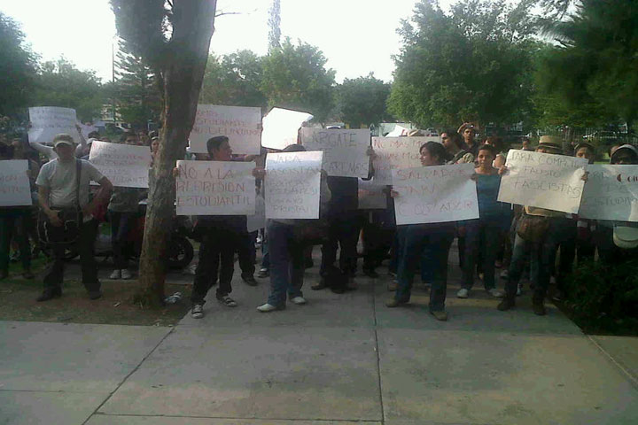 Con pancartas y múltiples consignas, el grupo de manifestantes insiste en la aparición de presuntos desaparecidos, así como en la liberación de los jóvenes que esta tarde fueron consignados.