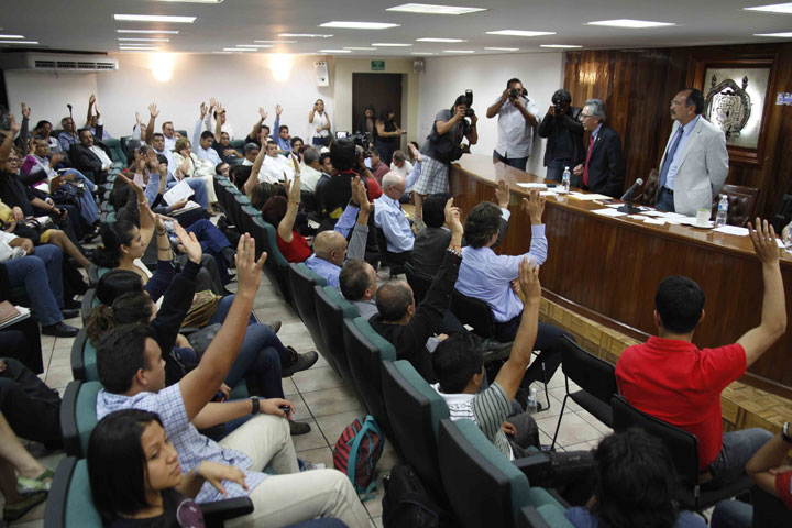 Durante la asamblea, los integrantes del... Ver más...