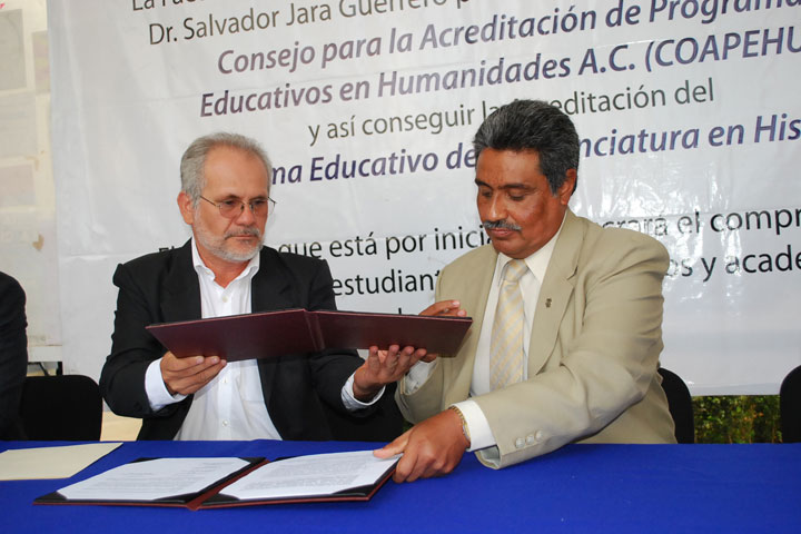 NOTICIAS 20/04/2012Inicia proceso de acreditación la Facultad de Historia de la UMSNHLa Facultad de Historia comenzará el proceso de acreditación de su programa educativo, por lo que hoy se llevó a cabo la firma del convenio con el Consejo para la Acreditación de Programas Educativos en Humanidades (COAPEHUM).