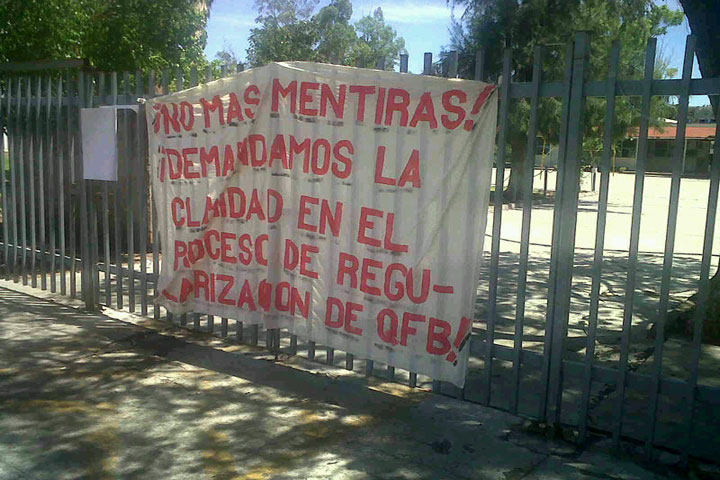 NOTICIAS 24/04/2012Demandarían profesores de Químico Farmacobiología ante la falta de diálogo y solución al conflictoAnte la falta de diálogo y solución a sus demandas, profesores de la Facultad de Químico Farmacobiología de la Universidad Michoacana, que desde la semana pasada mantienen tomada dicha dependencia universitaria, advirtieron que podrían demandar a la máxima casa de estudios ante la Junta de Conciliación y Arbitraje.