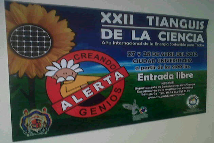 NOTICIAS 17/04/2012XXII Tianguis de la Ciencia, 27 y 28 de abrilCon la expectativa de recibir a 30 mil visitantes, los días 27 y 28 del presente mes, se llevara a cabo la Vigésima segunda edición del Tianguis de la Ciencia en las instalaciones de Ciudad Universitaria.