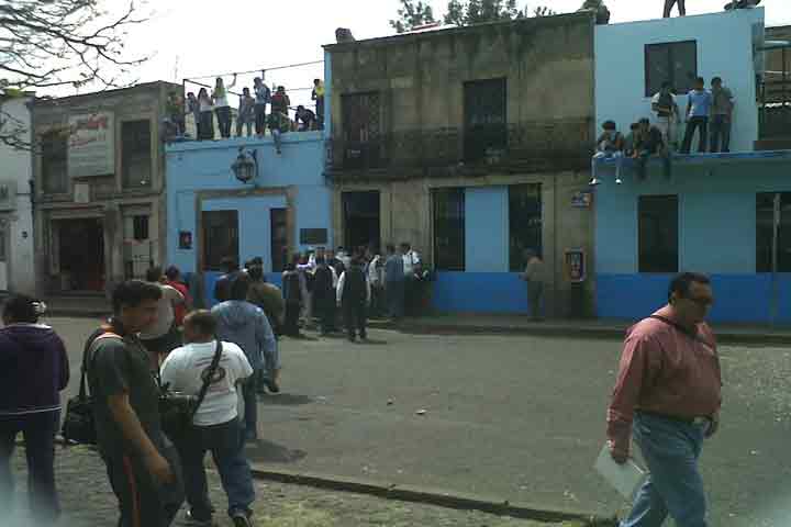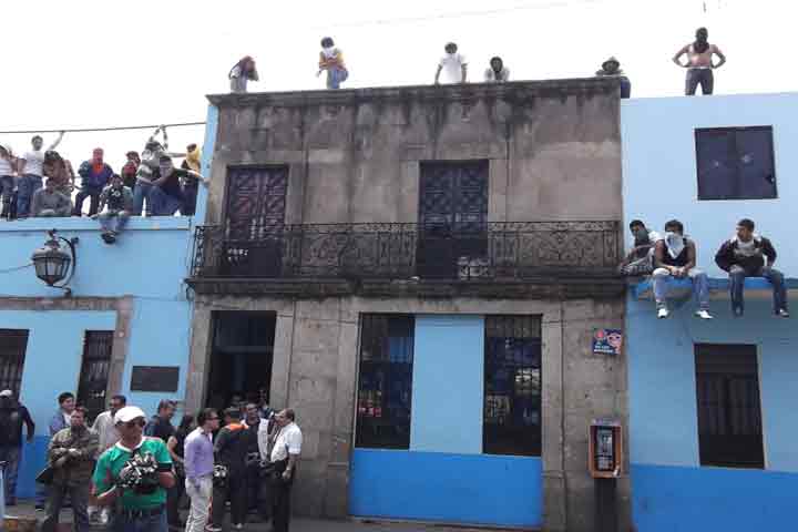 NOTICIAS 31/03/2012Habría un integrante de la CUL detendido después de agresiónDe manera extraoficial se conoce de la detención de un integrante de la CUL durante el desalojo que realizaran hace unos minutos elementos de la SSP, luego de que moradores de la casa de estudiantes "2 de octubre" bloquearan las inmediaciones de la Plaza Carrillo, y lo que origino que los paristas repelieran la acción lanzando botes de pintura, colchones piedras y palos para atrincherarse dentro de la casa.