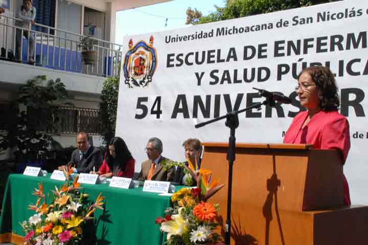 NOTICIAS 02/03/2012Celebra Enfermería su 54 aniversario La escuela de Enfermería y Salud Pública de la Universidad Michoacana de San Nicolás de Hidalgo, celebró el 54 aniversario de su fundación, en un acto presidido por el rector Salvador Jara quien reconoció que entre todas las carreras ésta es la que contribuye en la formación de personas solidarias y con mayor compromiso social.